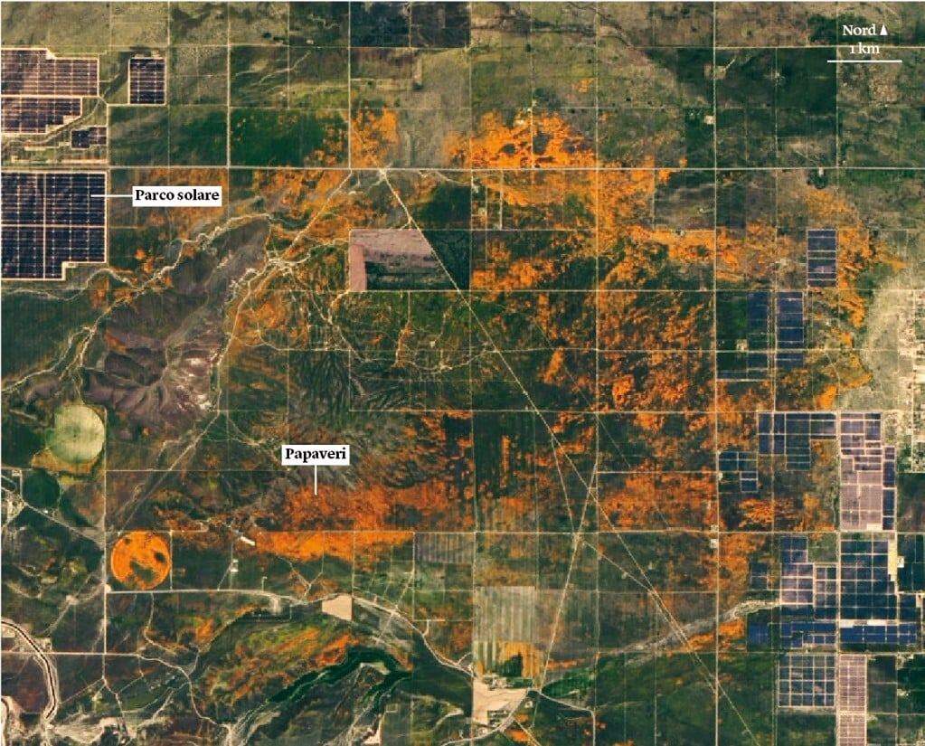 ◆ All’estremità occidentale del deserto del Mojave, in California, i campi di papaveri colorano di arancione il paesaggio. Quest’immagine, scattata dal satellite Landsat 8 della Nasa, mostra i papaveri della riserva di Antelope valley ad aprile, quando la fioritura era al culmine.