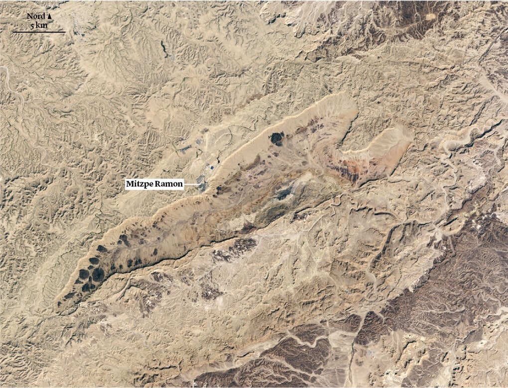 Più di duecento milioni di anni fa il deserto del Negev era situato sotto l’oceano primordiale Tetide. Quando l’oceano si è ritirato, è emersa una collina, in seguito appiattita dall’azione dell’acqua e del vento. I fiumi hanno poi eroso l’interno della collina, composta da calcare, creando il cratere Ramon.