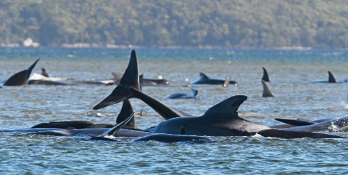 Cetacei Circa 380 globicefali (Globicephala melas) sono morti dopo essersi arenati nella baia di Macquarie, nell’isola australiana della Tasmania (nella foto). I soccorritori stanno cercando di salvare trenta esemplari ancora in vita, mentre altri cinquanta sono stati aiutati a tornare al largo.