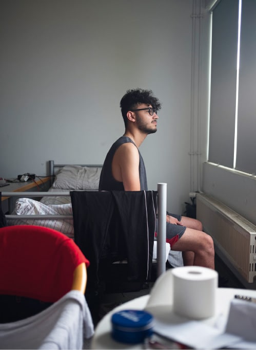 La struttura ospita circa trenta richiedenti asilo. Il letto di metallo di Mozaffri è nell’angolo della stanza 3; attaccati alla parete ci sono dei foglietti di carta con le parole in tedesco che sta imparando. Di fronte a un armadietto di metallo c’è un altro letto, occupato da un giovane iracheno a cui hanno appena respinto la richiesta di asilo. Dice che di notte ha paura quando sente chiudere le porte e che non sopporta l’idea di vivere ancora a lungo nell’ostello. In effetti, sembra che l’obiettivo sia renderlo il più scomodo possibile.