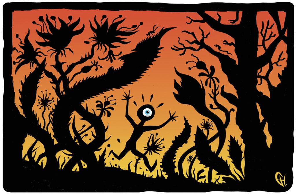 Non ho mai creduto davvero che quelle visioni fossero reali, ero alterato ma lucido. Ma anche sapendo che quelle immagini erano solo frutto della fantasia, il loro caos puro mi scuoteva. Un viaggio psichedelico spesso si svolge come una storia, strana ma coerente. Lì invece le visioni sembravano casuali, una borsa svuotata sul divano. Un attimo vedevo i miei figli alle prese con il loro futuro nella crisi climatica; quello dopo la morte di un amico, poi la mia lapide; e poi ancora mia moglie, bellissima.
