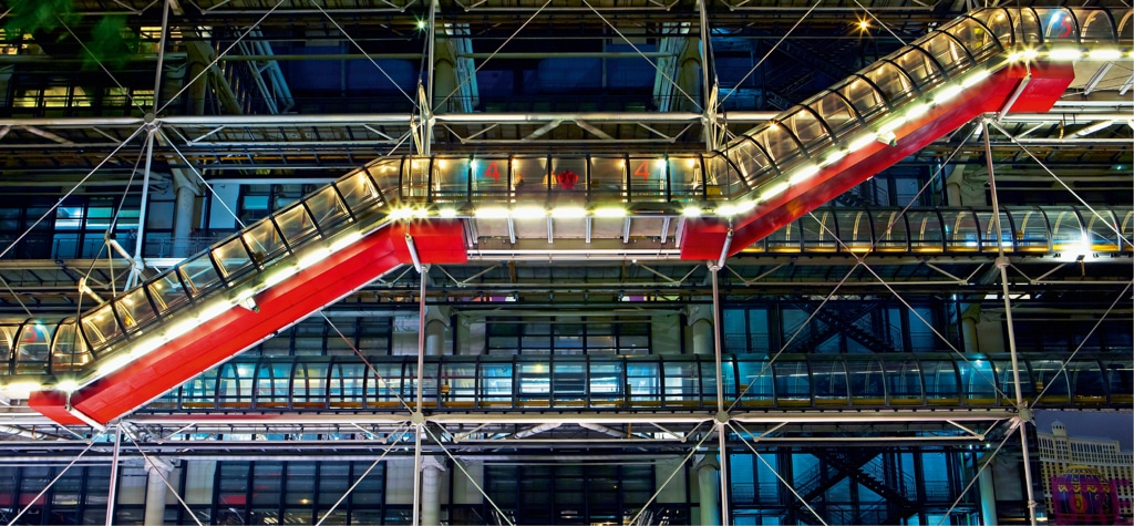La modernità, sulla scia del maggio del sessantotto, illuminò la Francia che usciva dall’ultima fase della presidenza di Charles de Gaulle. Il suo successore, Georges Pompidou, capo di stato tra il 1969 e il 1974, fu il promotore di questo centro, ma anche di altre iniziative come il rifacimento della Gare d’Orsay per ospitare il nuovo museo degli impressionisti. Di fronte a un de Gaulle immerso nella cultura più accademica e storica e dedito alla Francia profonda, dai Merovingi a Chateaubriand, Pompidou emerse come un uomo altrettanto colto ma ferocemente contemporaneo. Le cronache riportano che nel 1962, appena arrivato al palazzo di Matignon come primo ministro di de Gaulle, appese nel suo ufficio un grande quadro astratto, opera di Pierre Soulages.