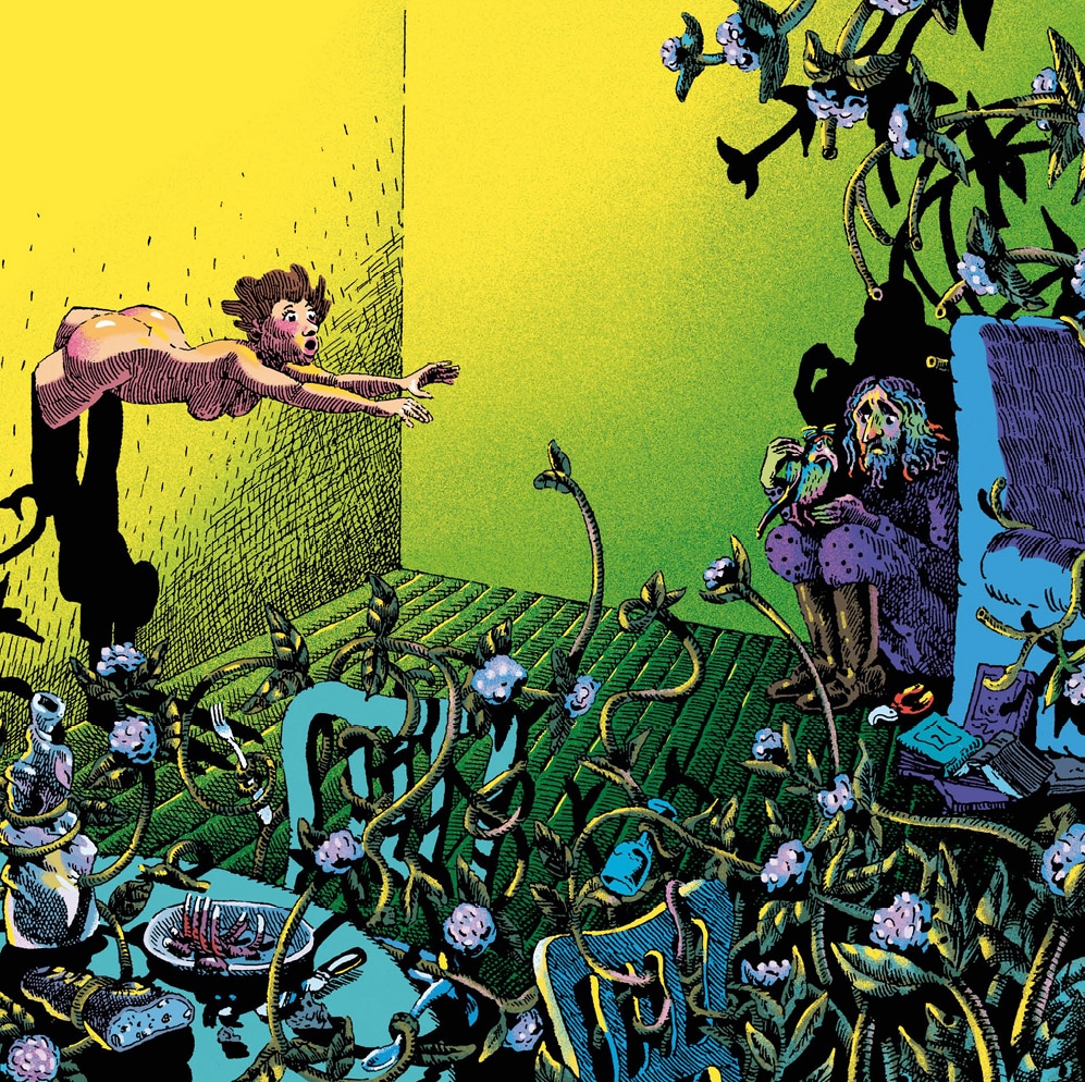 Evento editoriale: arriva in libreria un’illustratrice per l’infanzia e un’autrice tra le più importanti del fumetto d’autore europeo, la francese Nicole Claveloux. Se dopo gli anni ottanta si era allontanata dal fumetto, ultimamente è oggetto di un attento recupero che consente di riscoprire la produzione di questa eccezionale artista di matrice surrealista, proprio come era in buona parte surrealista Métal Hurlant, la rivista che la pubblicava, a cominciare da tanta fantascienza di Moebius. Basti pensare al raccontino in bianco e nero Una giornata in campagna, vero capolavoro di poesia e follia, di leggiadria grafica e surrealismo dissacrante: solo a lei riesce di fare della pura poesia moebiusiana pur realizzando qualcosa di totalmente personale. Ma ovviamente primeggia il racconto lungo a colori sceneggiato da Édith Zha, La mano verde, disegnato con una tecnica raffinata in cui la tempera si mescola all’aerografo e il disegno a china viene applicato dopo il colore: dilatando gli spazi, lavorando con sapienza sui silenzi e i tagli d’inquadratura (come quelli dal basso, o gli scorci laterali), ne escono fuori sequenze magiche, sospese. Il suo raffinato cromatismo impressionista esprime un mondo onirico sempre mutevole, sempre instabile, dove l’incanto è inseparabile dall’inquietante, l’infanzia dall’orrore adulto. E la melassa buonista è pura ipocrisia che allontana da ogni verità.