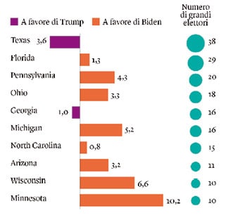 ◆ A causa della pandemia di covid-19 saranno molte di più le persone che voteranno per posta, quindi in alcuni stati le operazioni per il conteggio dei voti saranno più lente e macchinose. Per conoscere il risultato del voto potrebbero volerci giorni o perfino settimane.