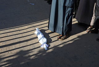 Il lenzuolo funebre avvolge il corpo di Majed Mohammed Zarab, morto a un mese per malnutrizione, nell’ospedale Nasser di Khan Yunis, dove si prepara il funerale. Mentre continua l’offensiva di terra israeliana nella città di Gaza, il ministero della salute palestinese ha fatto sapere che dal 7 ottobre 2023 sono morti per malnutrizione 440 palestinesi, tra cui 147 bambini. Nella sola giornata del 21 settembre sono morte quattro persone, tra cui Majed Mohammed Zarab. Alla fine di agosto le Nazioni Unite hanno dichiarato ufficialmente che nella Striscia di Gaza c’è la carestia.