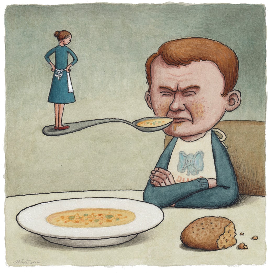 È universalmente riconosciuto che le persone che non hanno mai cresciuto un bambino schizzinoso sanno perfettamente come convincere i figli degli altri a mangiare. La loro è una conoscenza superiore, granitica nella sua teoria, incontaminata da una cosa prosaica come l’esperienza. Vi diranno che i genitori di oggi sono troppo accomodanti, che viziano i figli trasformandosi nei loro cuochi personali. E comunque i bambini mangiano troppo cibo spazzatura. Provate a servirgli farro arrosto e kombucha per qualche settimana e impareranno ad apprezzare i sapori veri. Se sono inappetenti: affamateli. Se non vogliono provare piatti nuovi: forzateli. In fondo i bambini francesi mangiano educatamente tutto quello che gli viene proposto, compresi il fegato e i coniglietti. Se i vostri figli non apprezzano quello che mettete in tavola, sarà per qualche vostra carenza morale.
