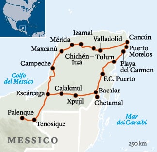 Il progetto ufficiale prevede una divisione in tre tratti (Golfo, Caraibi e foresta) e diciotto fermate in cinque stati: Campeche, Chiapas, Tabasco, Quintana Roo e Yucatán. Il tratto del Golfo, lungo 653 chilometri, passerà da zone molto eleganti come Mérida, Valladolid o Izamal, e da altre profondamente deprimenti, come Escárcega o Tenosique, un luogo di passaggio obbligato per i migranti dell’America Centrale diretti negli Stati Uniti. Il tratto caraibico, lungo 446 chilometri, andrà dalla paradisiaca laguna di Bacalar fino alla frenetica città di Cancún. Infine il tratto della foresta, lungo 426 chilometri, attraverserà la riserva della biosfera e prevede una stazione proprio davanti ai resti archeologici maya di Calakmul, patrimonio dell’umanità. Se tutto va secondo i piani del presidente, l’opera sarà finita nel 2023, un anno prima della scadenza del suo mandato.