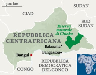 La riserva naturale si estende su quattro ex zone di caccia create nel 2008 dalla società di safari Central african wildlife adventures (Cawa), fondata da Erik Mararv, rampollo di una famiglia svedese che si trasferì nella Repubblica Centrafricana verso la metà degli anni settanta. All’epoca la caccia agli elefanti, ai leoni, ai bongo e agli eland di Derby, le più grandi antilopi africane, attirava i ricchi occidentali appassionati di caccia grossa e di trofei (al prezzo di circa 20mila dollari ad animale, 18.600 euro). A questi si aggiunsero altri amanti della selvaggina: le orde di guerrieri sudanesi che cacciavano a cavallo con armi pesanti. Così gli animali cominciarono a diminuire e alcuni scomparvero completamente dalla foresta di Chinko.