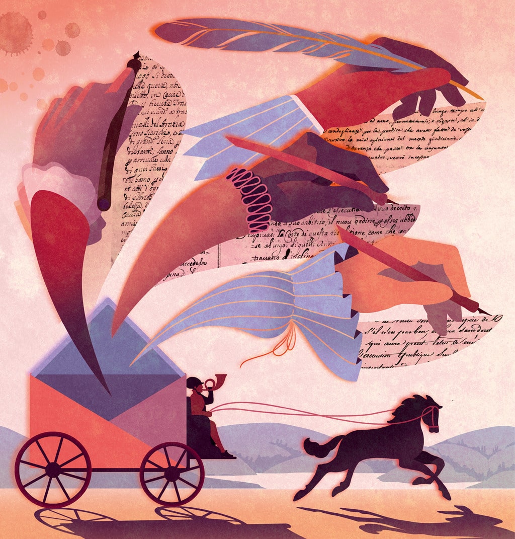 Nell’Europa della prima età moderna, i corrieri erano il simbolo di un continente sempre più collegato. Viaggiavano velocemente su strade sempre migliori ed erano diventati più affidabili, con le bisacce che a ogni tappa passavano a un nuovo cavaliere pronto a proseguire il viaggio. Grazie agli orari prestabiliti, era possibile seguire il tragitto di una lettera in tutto il continente, da una locanda all’altra, da una città all’altra, da una stazione di posta alla successiva. Nel sedicesimo e nel diciassettesimo secolo, con l’apertura dei servizi postali statali ai privati, i volumi della corrispondenza aumentarono vertiginosamente. I vecchi sistemi medievali, che si affidavano a reti gestite da mercanti o dalla chiesa, oppure all’espediente di affidare la lettera a un messaggero fidato che andava nella direzione giusta, furono rapidamente superati.