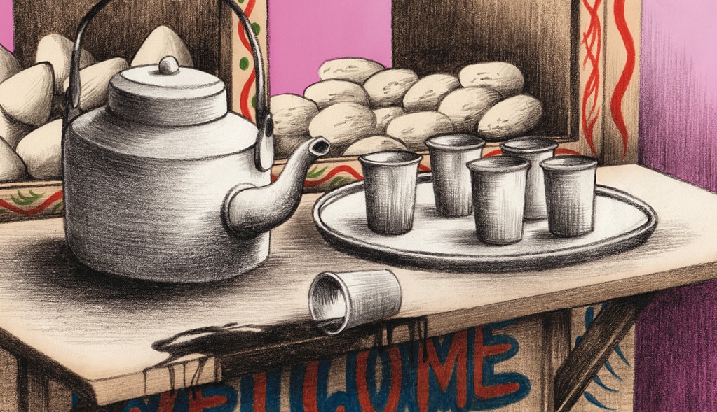 La faccia del nuovo primo ministro è dappertutto. Sui pali del telefono, sulle panchine dei parchi, sui bidoni dell’immondizia e sul retro delle macchine, e perfino addosso a tante persone che portano maschere del suo viso con due buchini per gli occhi. La ragazza non sa come ha fatto a comparire, quella faccia, sulla fontanella accanto al chiosco. A volte non riesce a mettere il cardamomo nel chai del ragazzo per paura del primo ministro che la osserva. Altre volte evita di mettercelo perché tanto, per quel che ne sa lei, il ragazzo neanche ci fa caso.