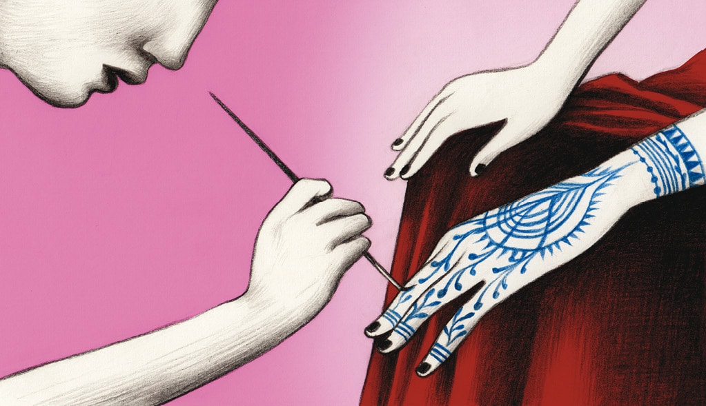 A volte, quando la ragazza viene ingaggiata come tatuatrice per un matrimonio – se la cava piuttosto bene con l’henné – il padre si occupa del chiosco mentre lei passa ore a dipingere le mani alle spose. Nasconde il nome dei futuri mariti in mezzo a intricati ghirigori spiraleggianti di henné.