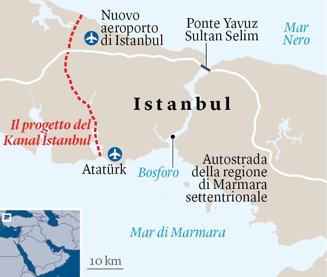 Nell’annunciare il suo progetto Erdoğan era stato chiaro: il nuovo canale serve per decongestionare un Bosforo sempre più trafficato e renderlo più sicuro e pulito. Un’opera, hanno scritto i giornali compiacenti, che potenzierà la centralità geopolitica e geoeconomica della Turchia. Nei comunicati del governo si è specificato che essendo un corso marittimo artificiale sotto la sovranità nazionale sarà escluso dai vincoli di Montreux e quindi la Turchia avrà il diritto di riscuotere pedaggi di transito calcolabili in un miliardo di euro nella prima fase fino ad arrivare a cinque miliardi all’anno.