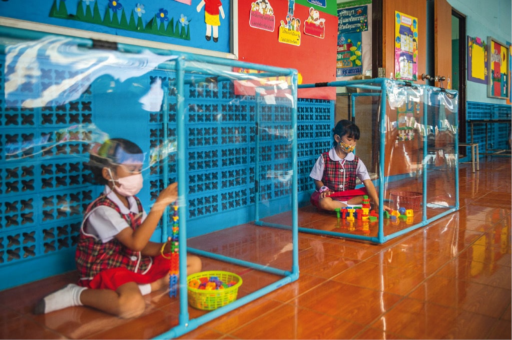 I bambini e le bambine fino ai sei anni possono non indossare la mascherina. Le famiglie devono comunicare subito se i componenti del nucleo familiare hanno avuto contatti con persone positive al covid-19 e devono tenere i figli a casa in caso di temperatura oltre i 37,5 gradi o di altri sintomi influenzali. Se studenti o personale scolastico presentano i sintomi a scuola, sono separati dagli altri e fatti rientrare il prima possibile a casa. In caso di contagio, si tracciano i loro contatti.