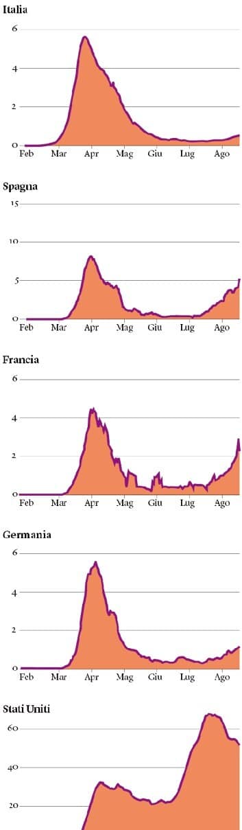 In Italia il tasso di nuove infezioni è sceso a uno dei livelli più bassi d’Europa, anche inferiore a quello della Germania. Questo mentre negli Stati Uniti – che dopo la seconda guerra mondiale spesero cifre incalcolabili per dare stabilità all’Italia – il virus si è diffuso incontrollato a causa dell’incapacità dei governanti. Al contrario degli italiani, gli statunitensi hanno vissuto la stagione della disgregazione.