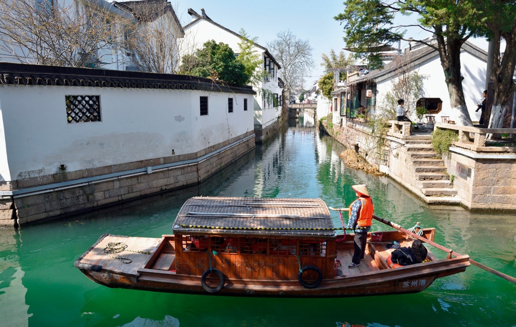 Per quanto riguarda i canali, il più importante della zona è quello grande di Suzhou, che si trova nel bacino del lago Tai e fa parte del Gran canale di Jiangnan, che va da Zhenjiang a nord fino a Hangzhou a sud. Attraversa il centro di Suzhou e copre il 4,5 per cento del grande canale Pechino-Hangzhou. Lo scavo cominciò nel periodo delle primavere e degli autunni (dal 770 al 453 av anti Cristo) e fu completato alla metà della dinastia Tang (dal 618 al 907 dopo Cristo). Oggi ci navigano più di seimila imbarcazioni. Lungo il canale ci sono vari monumenti, come la porta Xu, la porta Chang o la via Shantang, un antico viale costruito nell’852 che conserva ancora case antiche dove si vende cibo locale e artigianato. Un vero e proprio viaggio nel passato. L’area di Suzhou è famosa per le città sull’acqua. I più visitati sono Tongli e Zhouzhuang. Il primo ha più di mille anni di storia ed è ricco di edifici antichi e cultura popolare, come il giardino Tuisi e il palazzo Gengle. Zhouzhuang è considerata la città sull’acqua più importante della Cina. Durante la visita non bisogna perdersi i ponti gemelli o la residenza Shen. ◆ fr
