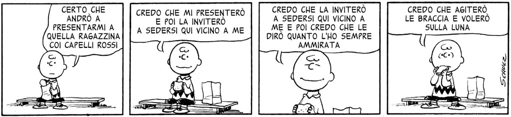 Condividi Stampa Copia link Email Facebook X Telegram LinkedIn Whatsapp Whatsapp Reddit Look up! (Peter Kuper, Stati Uniti) Buni (Ryan Pagelow, Stati Uniti) Peanuts, 1960 (Charles M. Schulz, Stati Uniti) Mafalda, 1964 (Quino, Argentina)