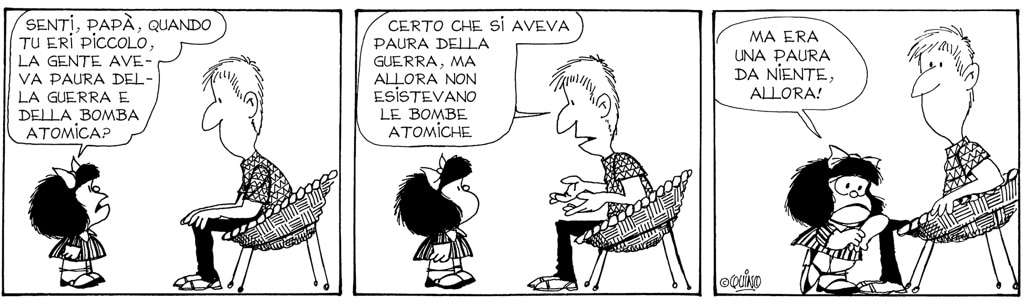 Condividi Stampa Copia link Email Facebook X Telegram LinkedIn Whatsapp Whatsapp Reddit Look up! (Peter Kuper, Stati Uniti) Buni (Ryan Pagelow, Stati Uniti) Peanuts, 1960 (Charles M. Schulz, Stati Uniti) Mafalda, 1964 (Quino, Argentina)