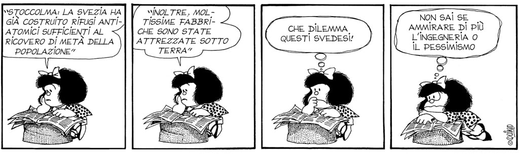 Condividi Stampa Copia link Email Facebook X Telegram LinkedIn Whatsapp Whatsapp Reddit Look up! (Peter Kuper, Stati Uniti) Buni (Ryan Pagelow, Stati Uniti) Peanuts, 1960 (Charles M. Schulz, Stati Uniti) Mafalda, 1964 (Quino, Argentina)