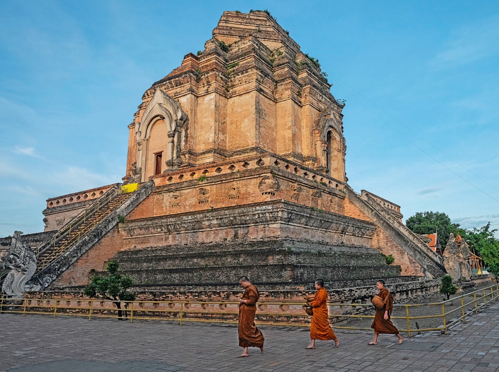 Il tempio probabilmente più famoso, Wat Chedi Luang, nel centro della città vecchia, fu costruito nel 1401 con un chedi alto ottantasei metri. Nel 1454 un terremoto distrusse parzialmente il chedi, di cui restarono in piedi solo sessanta metri. È rimasto così fino al 1992, quando fu restaurato.