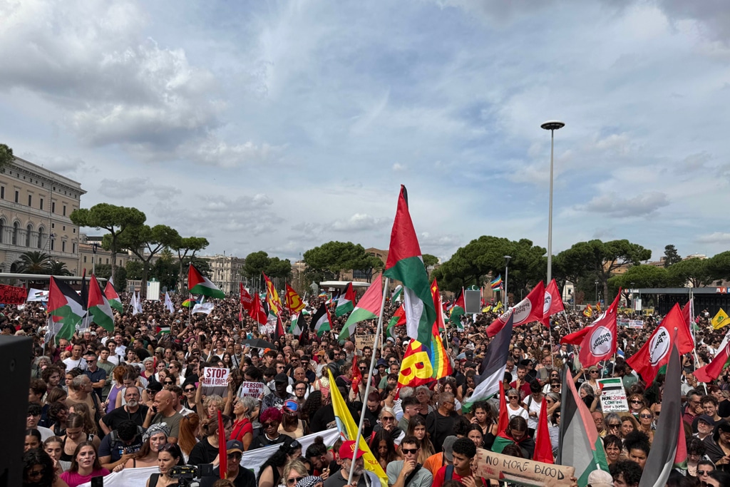 Nel primo pomeriggio tanti sono arrivati a San Lorenzo, storico quartiere operaio di Roma, bombardato durante la seconda guerra mondiale e sede dell’università. Dalle finestre dei palazzi si sono affacciate molte persone che applaudivano, sventolando bandiere e sciarpe tradizionali palestinesi. Quando i manifestanti sono arrivati sulla sopraelevata hanno bloccato il traffico.