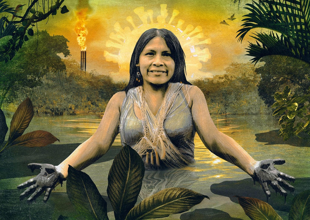 È un’attivista per l’ambiente che vive nell’Amazzonia ecuadoriana. Da anni si batte per bloccare l’attività di estrazione petrolifera nella sua regione e proteggere la foresta dallo sfruttamento
