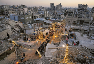 La torre Mushtaha colpita da un bombardamento israeliano nella città di Gaza. L’edificio di dodici piani, dove vivevano decine di famiglie, era un punto di riferimento… Leggi